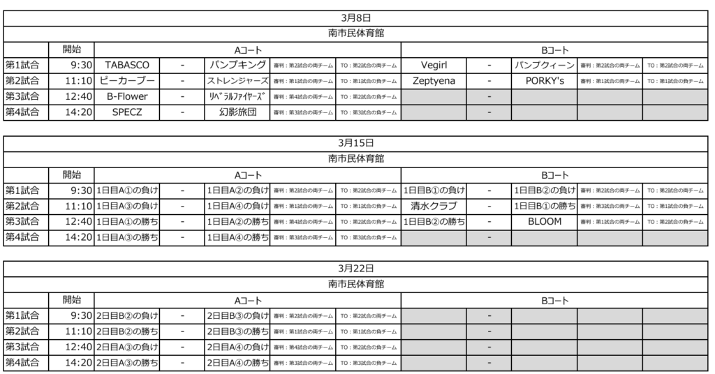 トーナメント表と組み合わせを公開いたします。